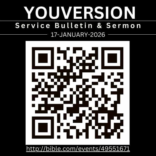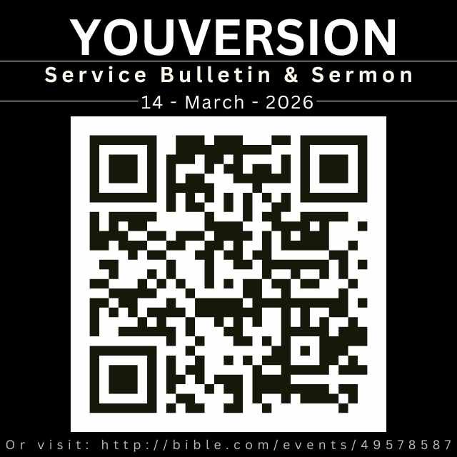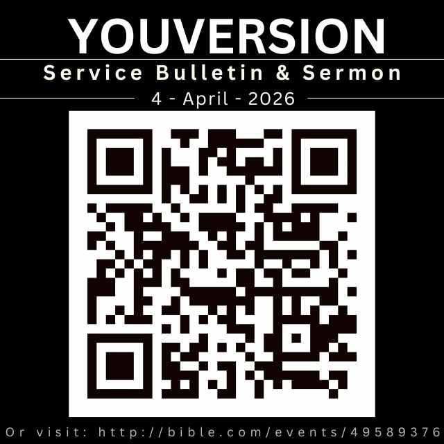 You may scan the Qr-Code overleaf to access today’s sermon and service bulletin or click here: Youversion-Slides-Bulletin. Remember to save to favorites so you can always access anytime later.