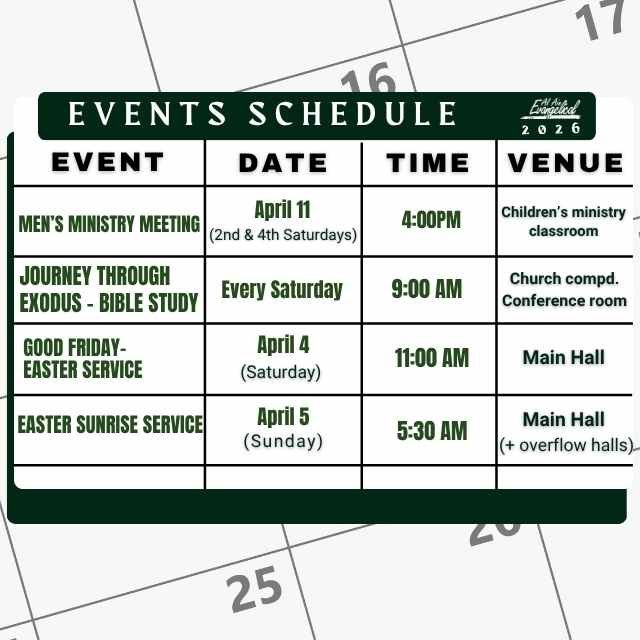 You are warmly welcome to join us at any of our upcoming events. For enquiries, please contact the church office at +971-545422774 or [email protected]. We look forward to welcoming you!